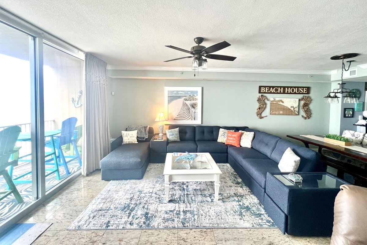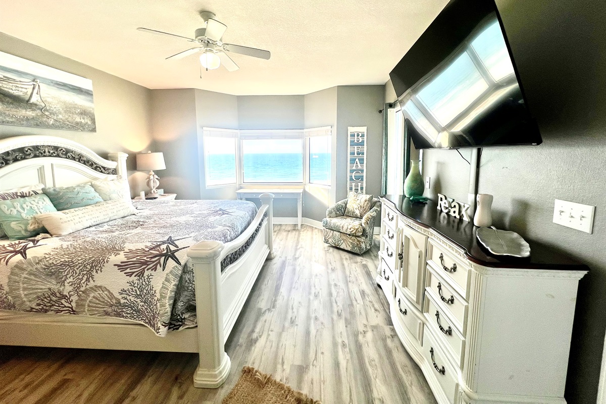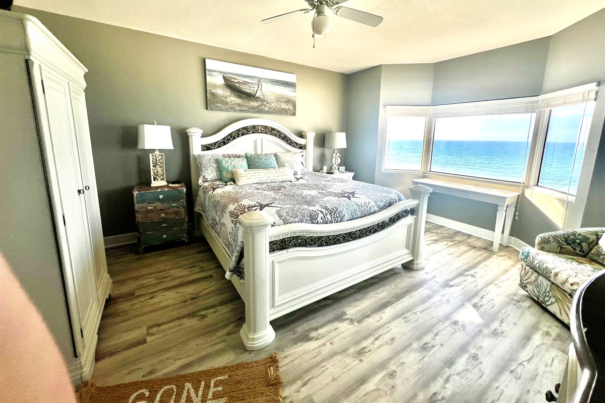 This luxury condo is located on the 3rd floor and in the center of the building so your beach view from the living room, dining room, kitchen and Primary bedroom is spectacular. The Primary bedroom has its own private sliding glass doors that open up to the balcony. Upgraded sheets and towels make your stay even more luxurious.